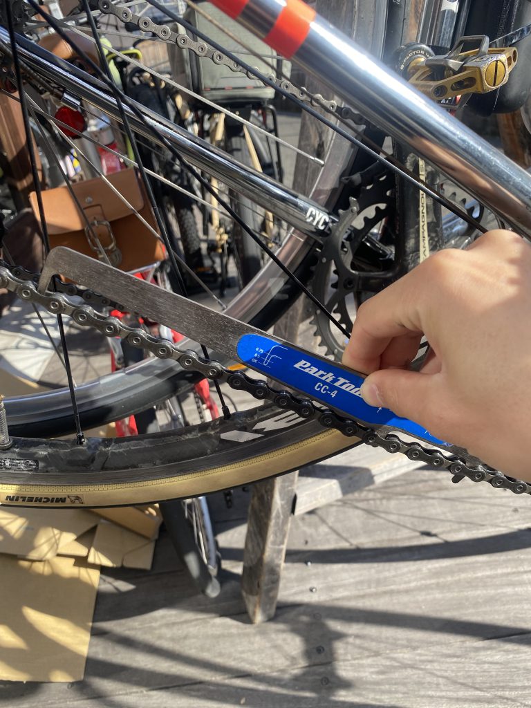 ワイヤーが切れて動かなくなったり、タイヤがパンクして使えなくなったりすることと違い、目に見える変化が少なく劣化に気づきにくいのでチェーンもしっかりチェックしてもらいましょう。