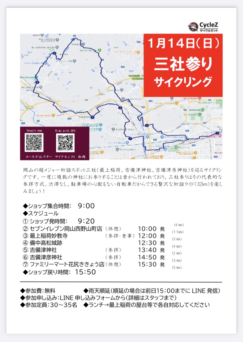 2024年1月14日(日)に三社参りサイクリングを開催いたします!
