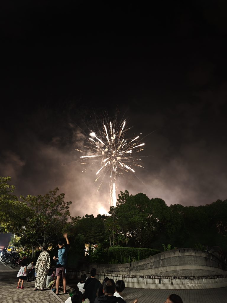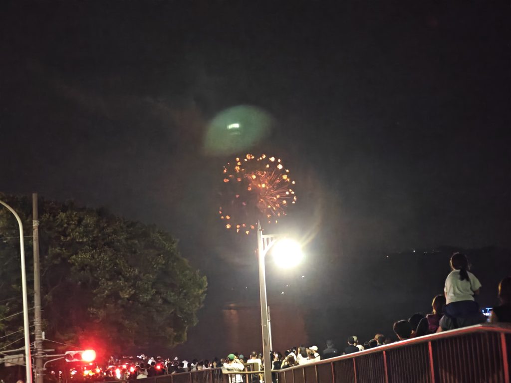 ちょっと風向きの関係か花火が煙に隠れて少し見えないというのは予想外でしたが笑