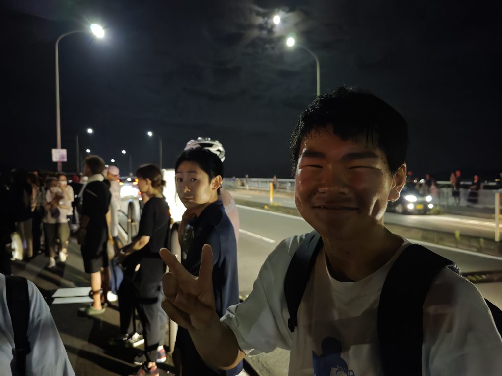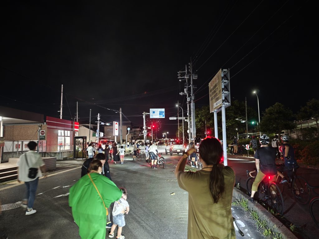 夜の道で慣れないこともあり、花火開始のPM8:00には滑り込みセーフぐらいで間に合いましたが、自転車を置く場所や実際に見える場所まで行くのにドタバタしてしまいました!