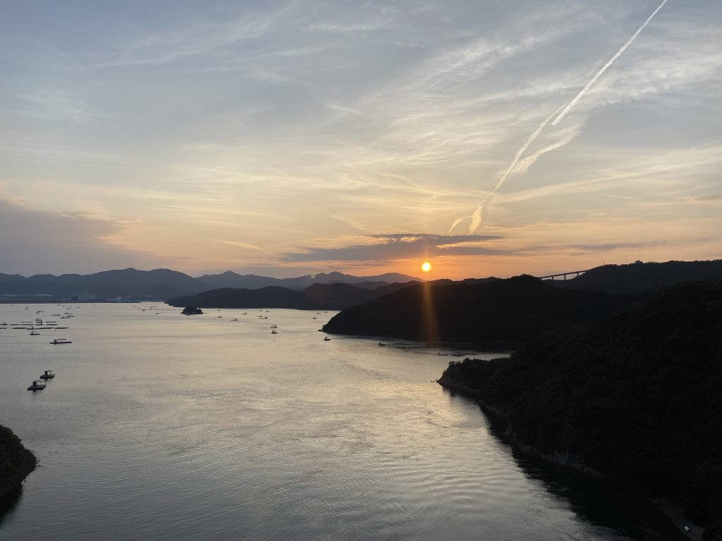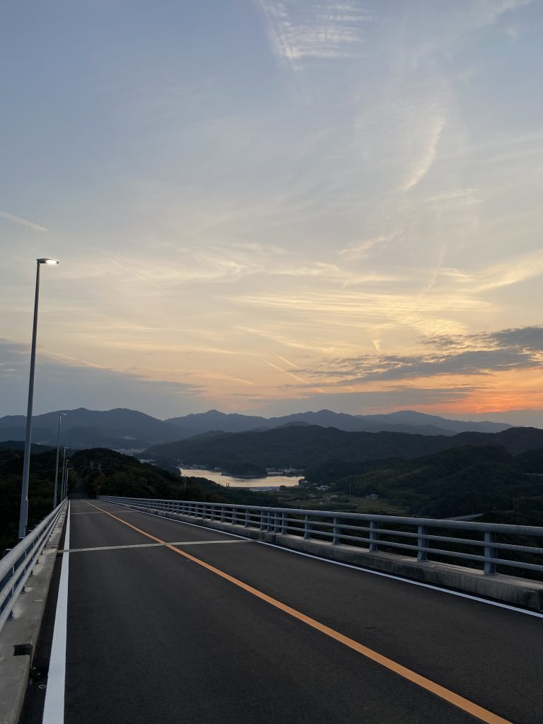 そして鳴門スカイラインを通っていた時、ちょうど夕日が沈む時間帯で最高の景色を見ることができました。