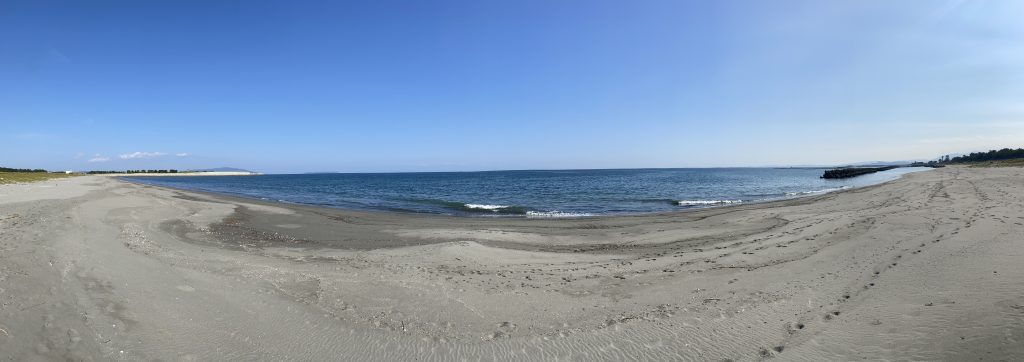 その道中で月見ヶ丘海浜公園という浜辺を見つけ、気になって立ち寄りました。