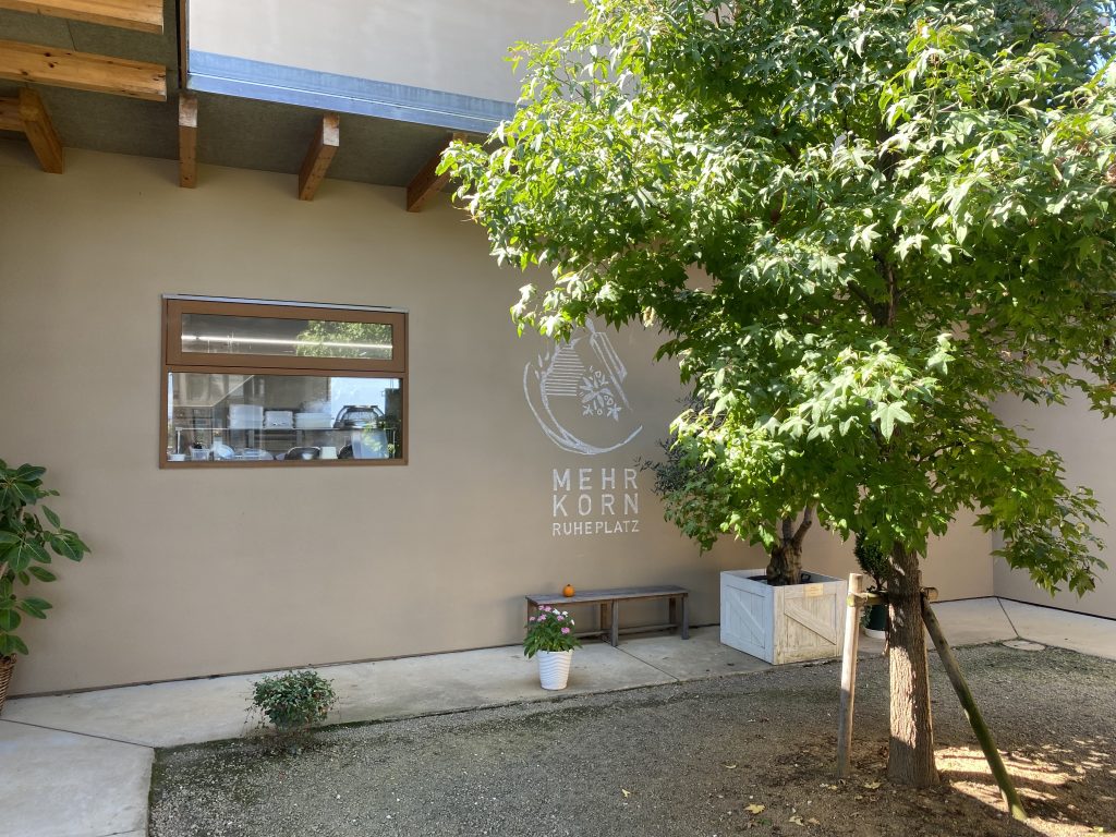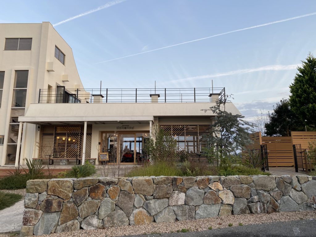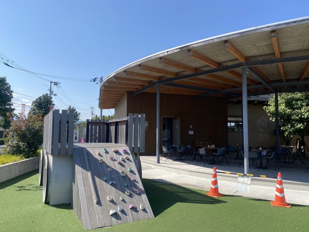 眉山の寺町と住宅街を走り抜けていると、開放感のあるテラス席や遊具もある大きなパン屋さんを発見!