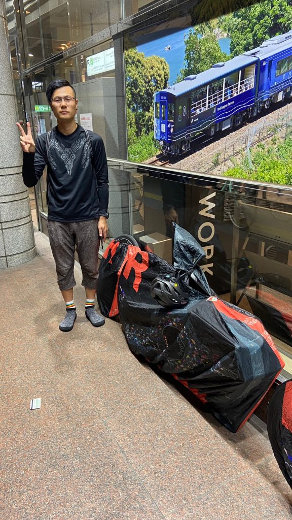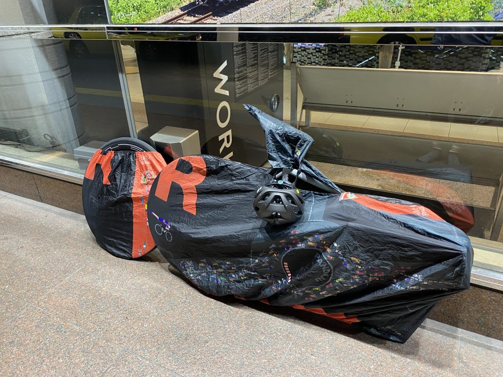 輪行の場合、電車の出発20分前ぐらいに駅に到着していれば、余裕を持って準備が出来ると思います(輪行袋の種類や慣れで変わるので、あくまでも目安として)。
